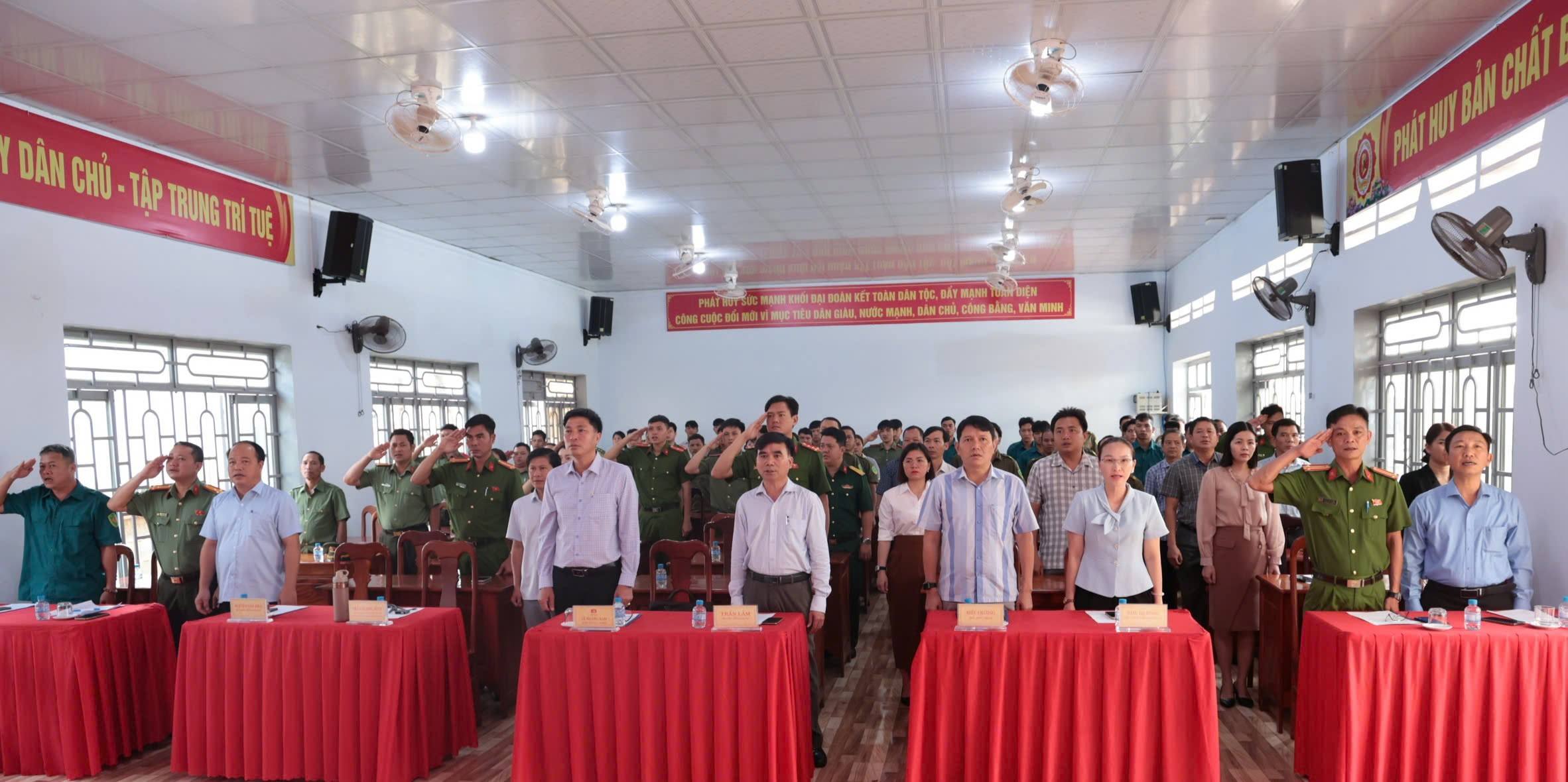 Tham dự buổi lễ có: ông Lê Hoàng Nam – Bí thư Đảng ủy xã; ông Trần Lâm – Chủ tịch UBND xã; bà Đặng Thị Hương – CT. UBMTTQ Việt Nam xã; cùng Công an , Ban Chỉ huy Quân sự, Đoàn Thanh niên, các ban ngành, đoàn thể xã; bí thư, trưởng thôn, Ban Giám hiệu các trường học và đông đảo các em học sinh trên địa bàn xã.
