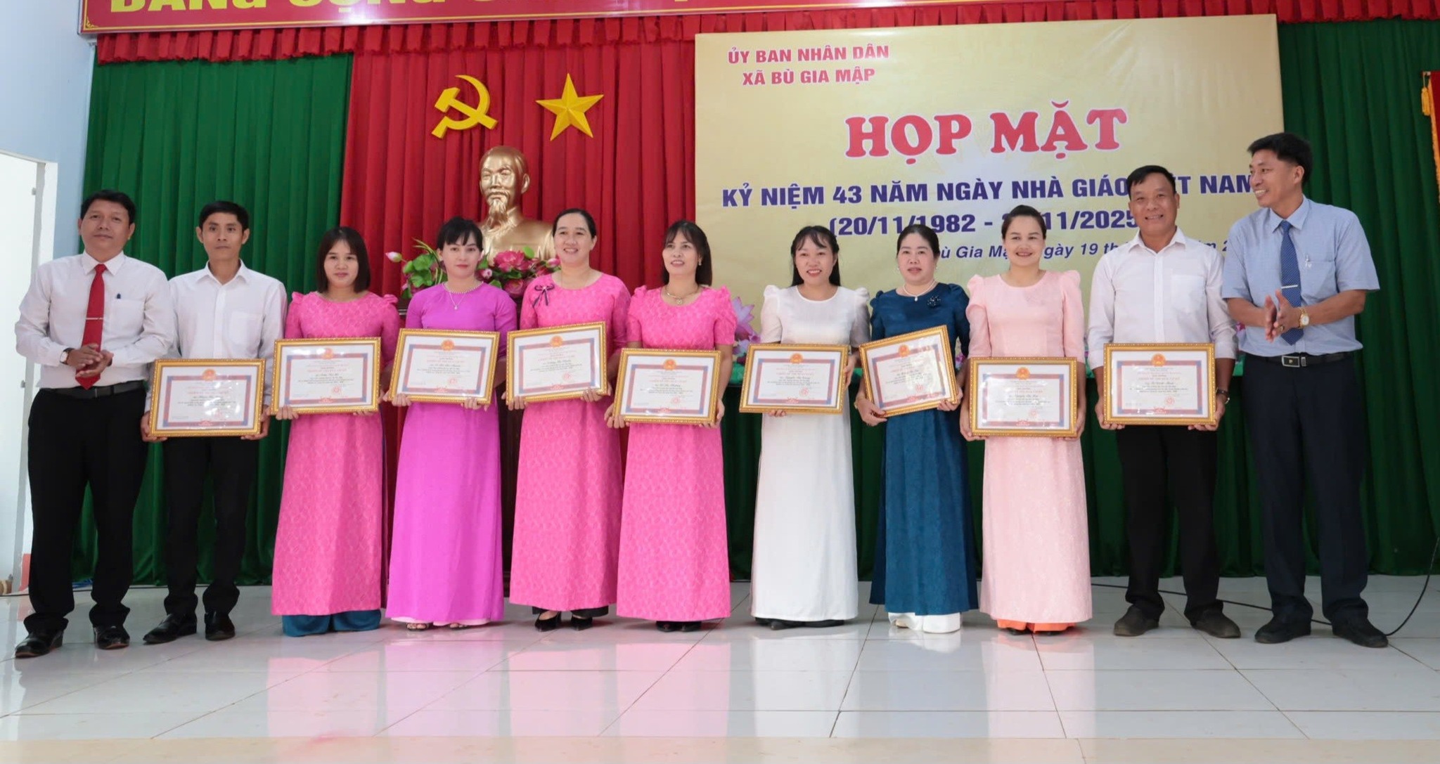 Sáng nay, ngày 19/11/2025, UBND xã Bù Gia Mập đã long trọng tổ chức buổi Họp mặt kỷ niệm 43 năm Ngày Nhà giáo Việt Nam trong không khí trang trọng, ấm áp và giàu ý nghĩa tri ân. Chương trình có sự tham dự của: đồng chí Lê Hoàng Nam - Bí thư Đảng ủy, CT. HĐND; đồng chí Điểu Chương - PCT. HĐND; lãnh đạo các ban ngành, đoàn thể; cùng đông đảo thầy cô giáo đang công tác tại các trường học trên địa bàn.