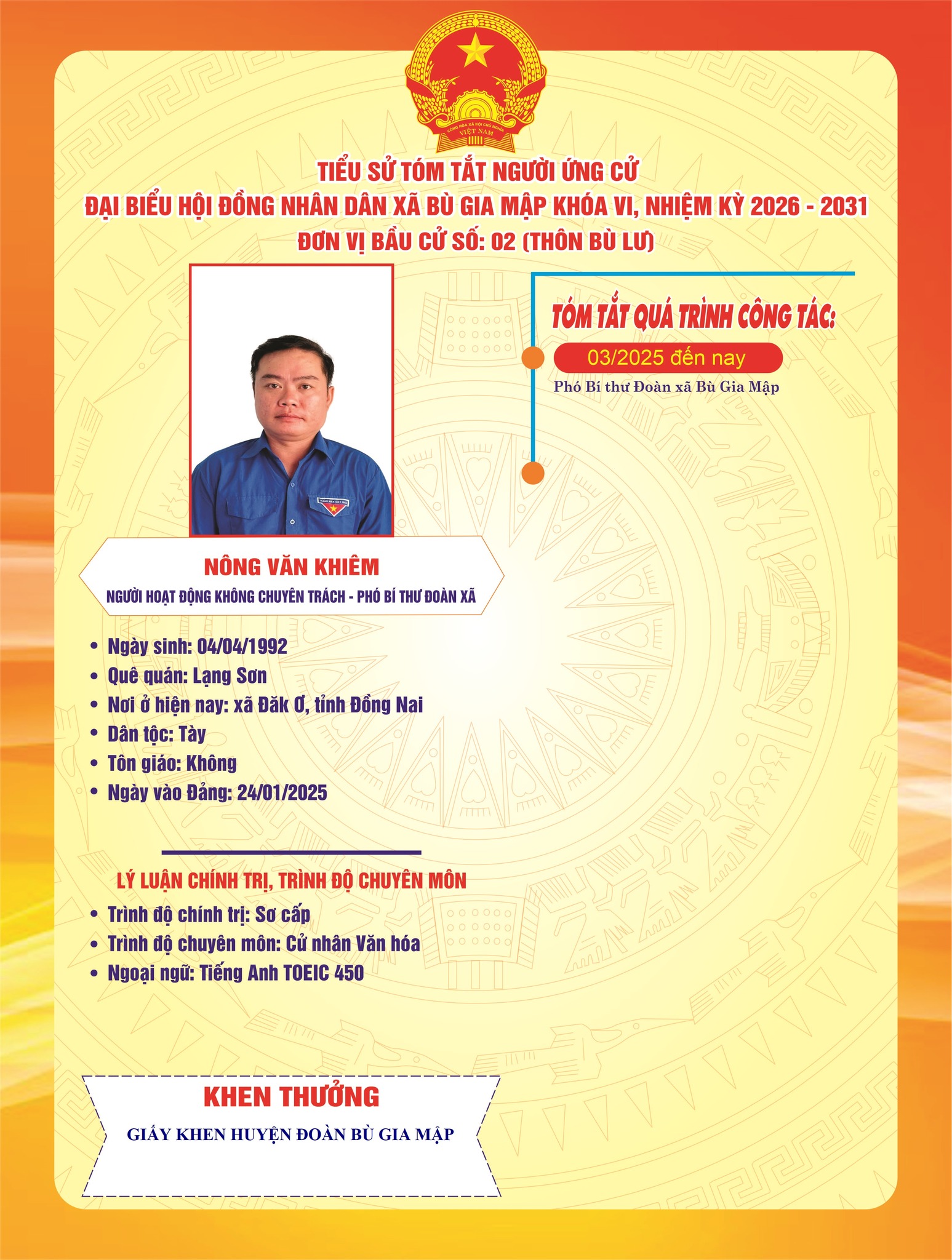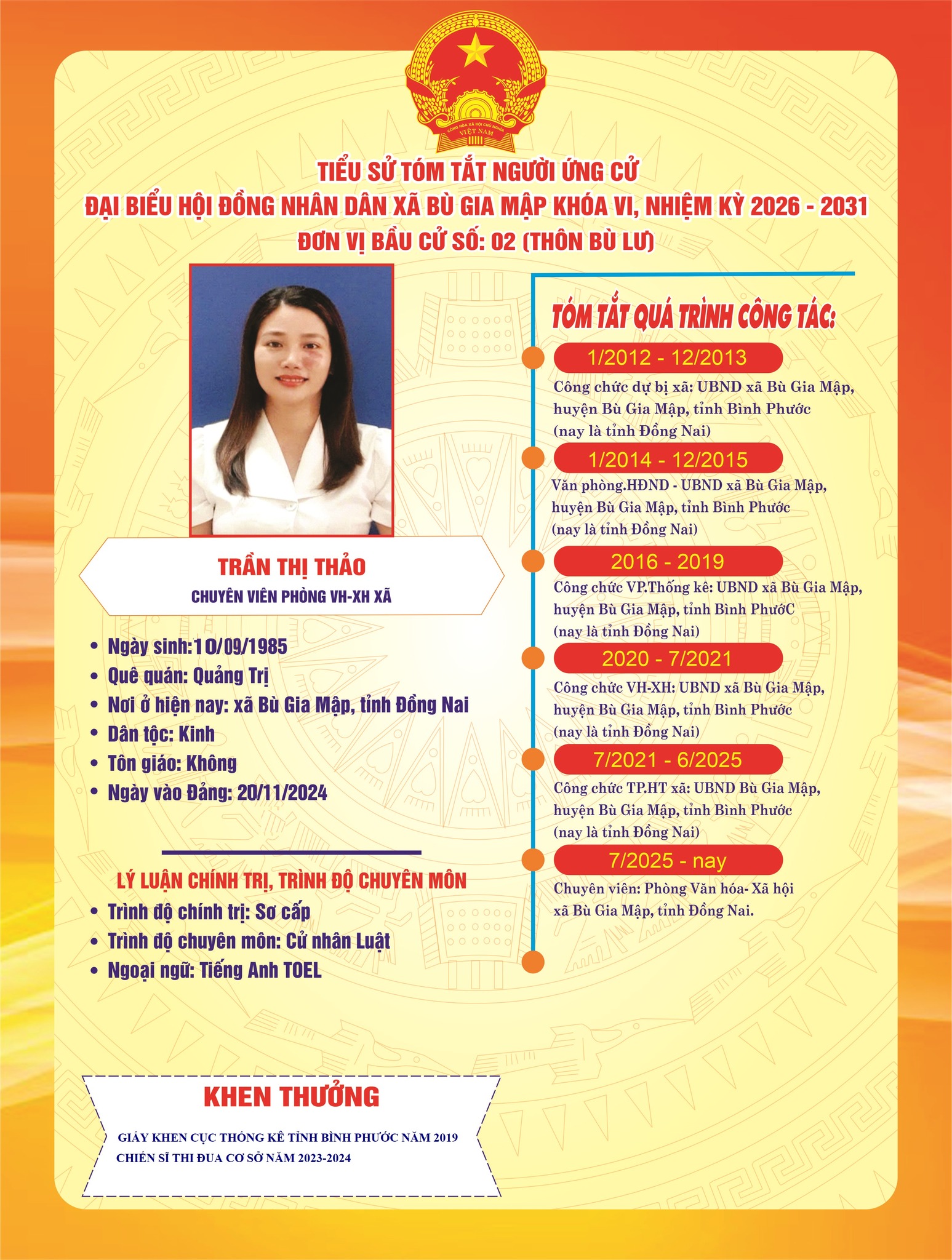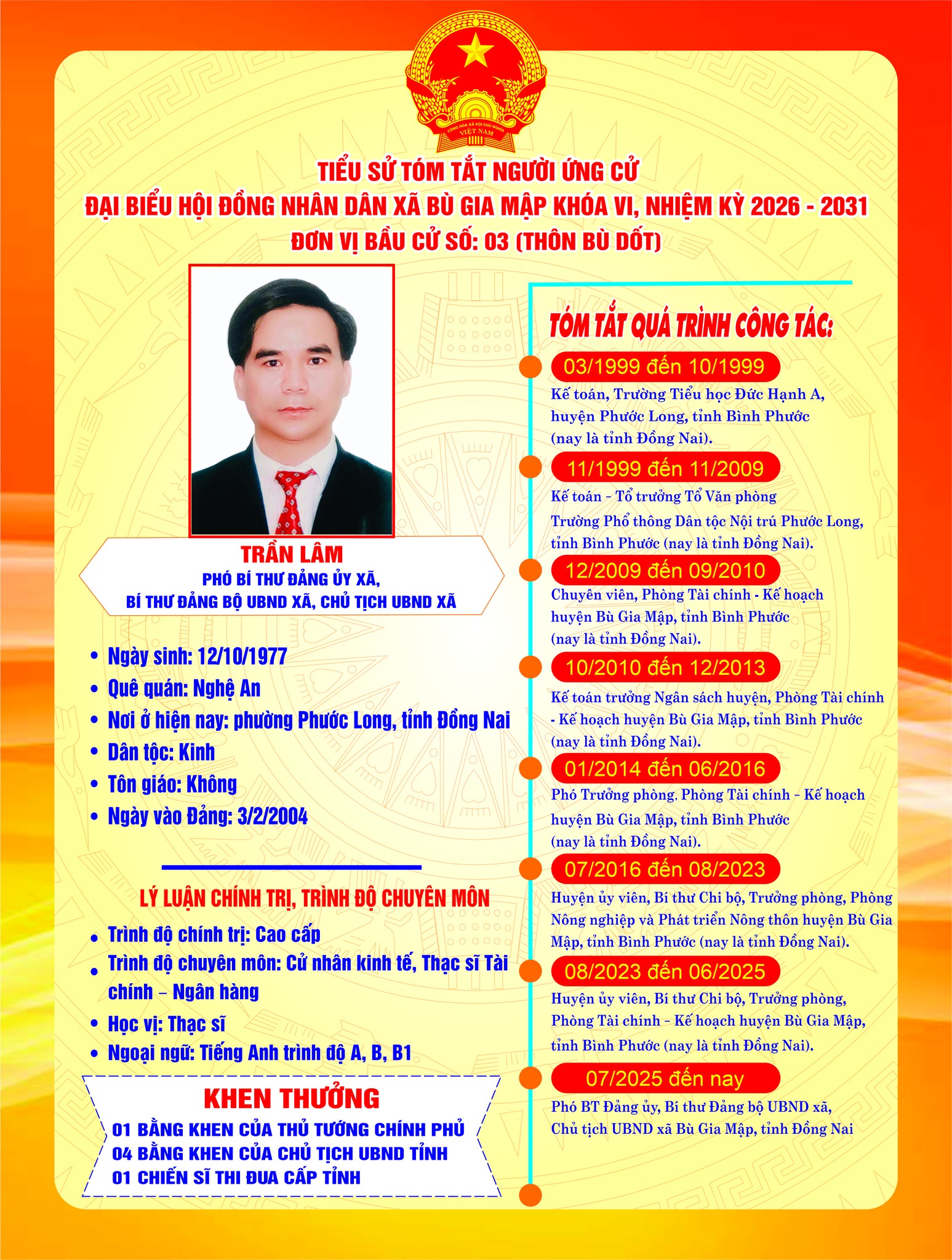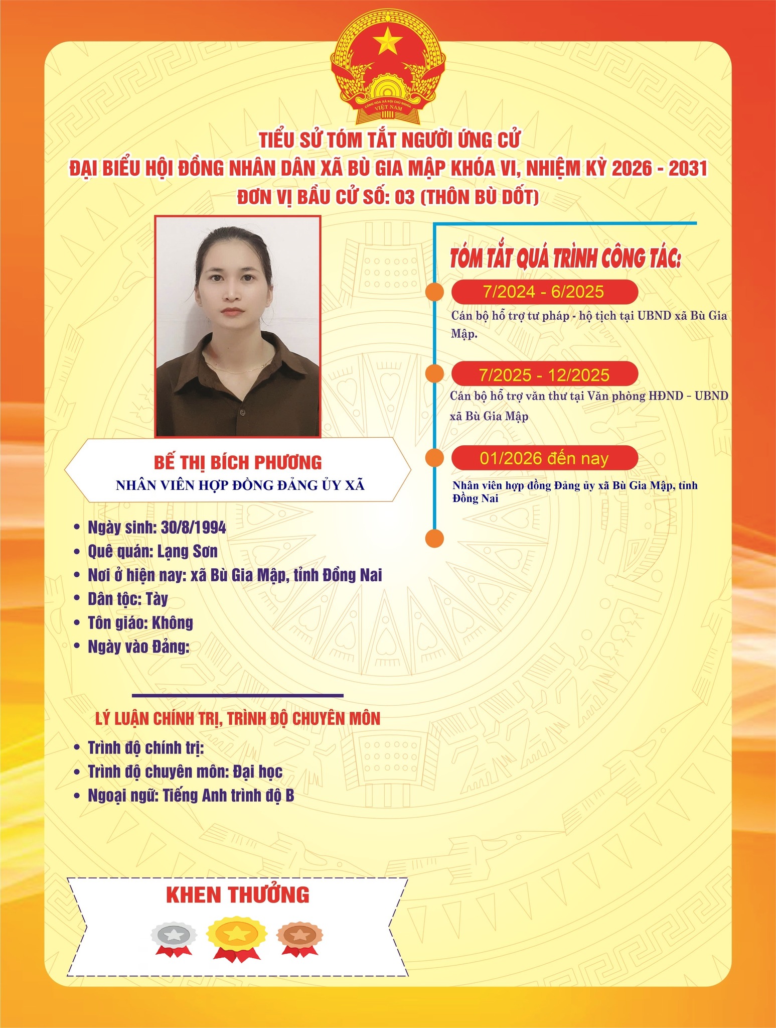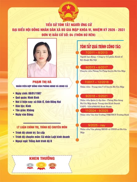 Tiểu sử tóm tắt ứng cử viên đại biểu HĐND xã nhiệm kỳ 2026–2031