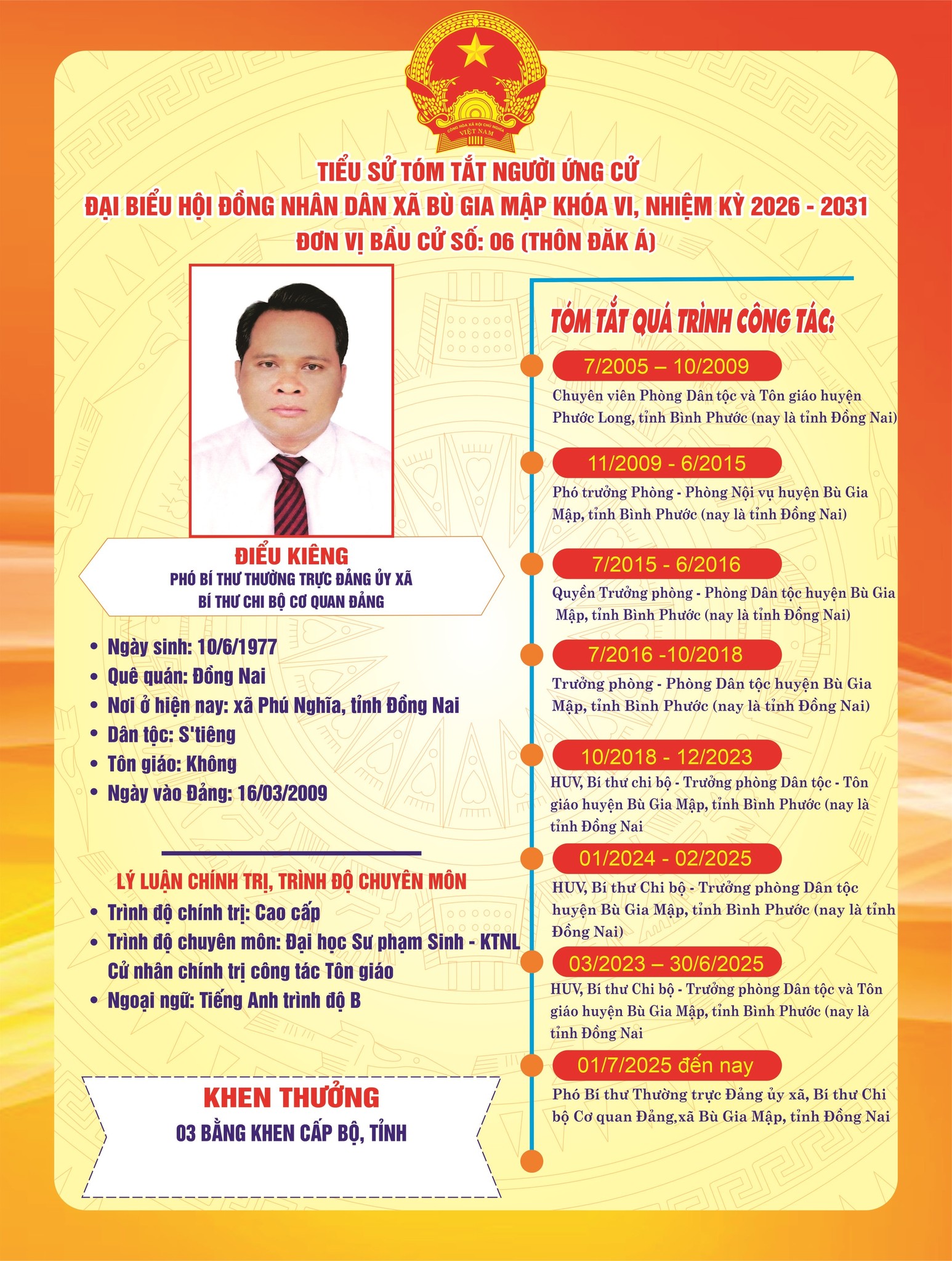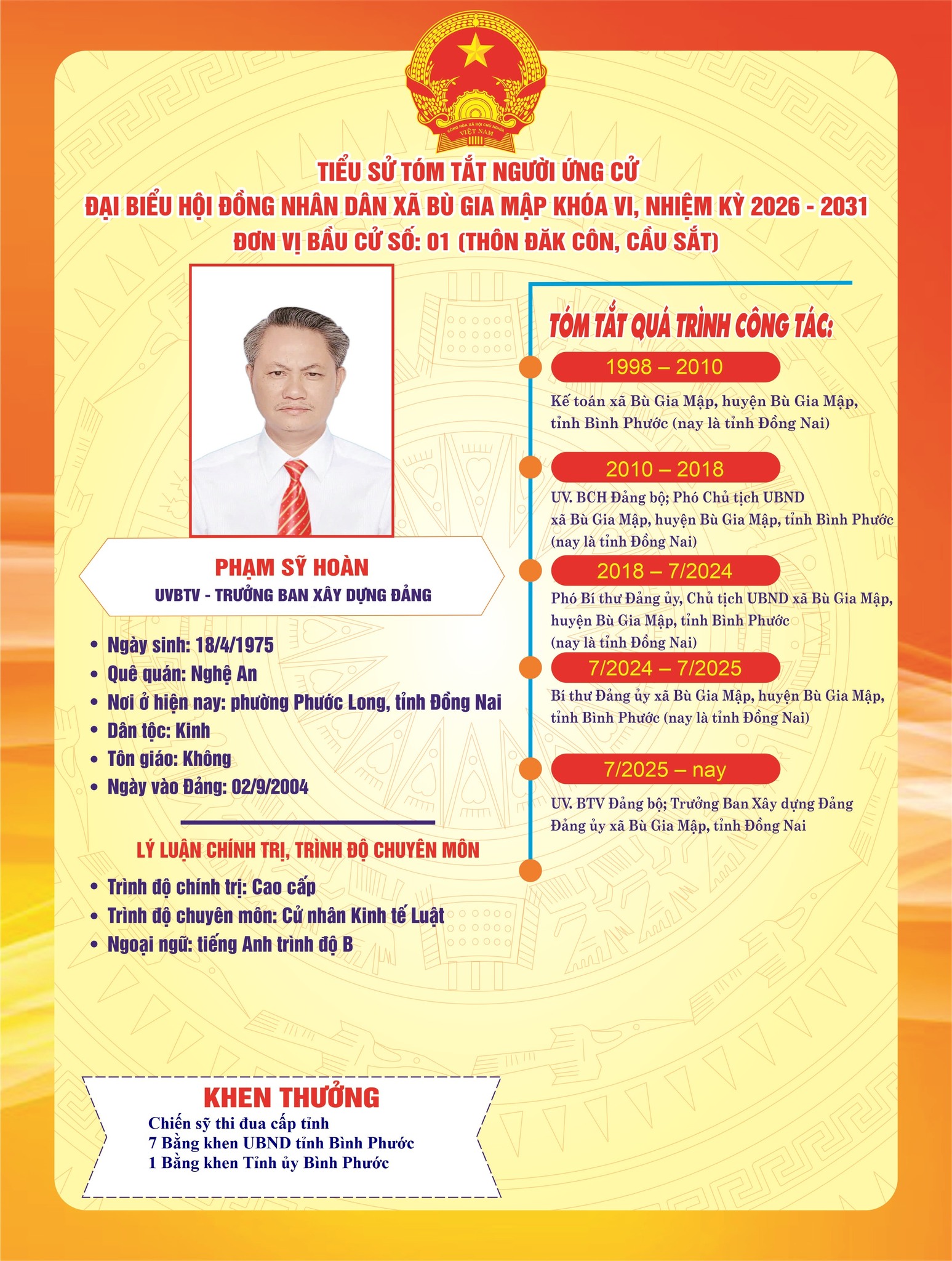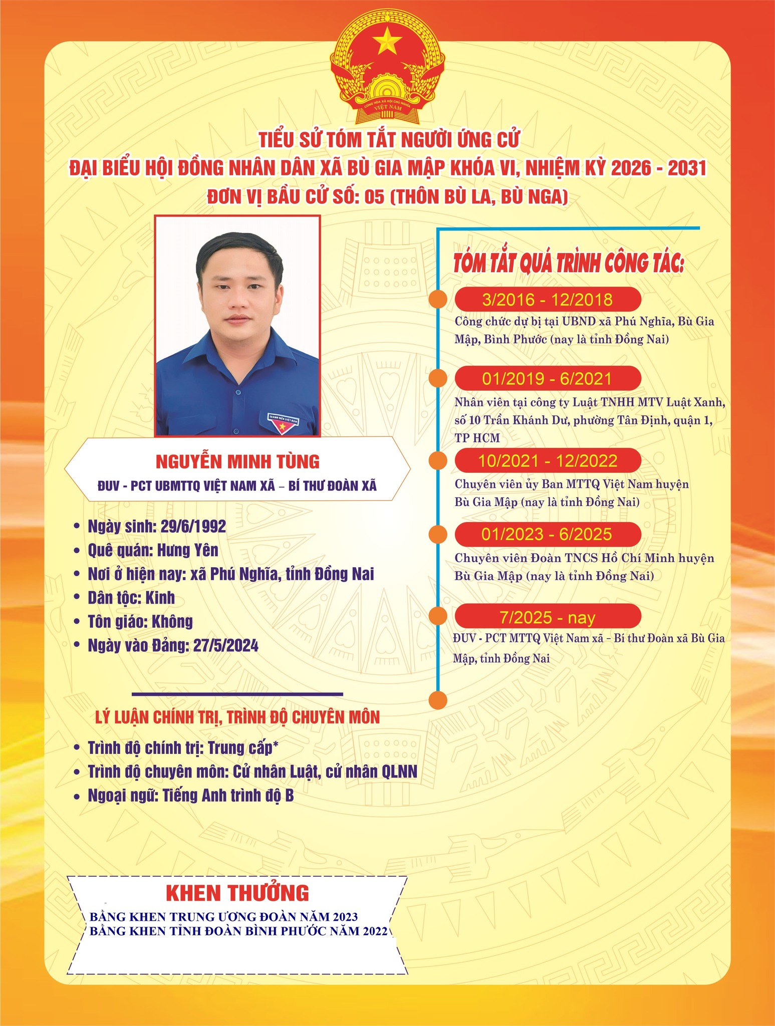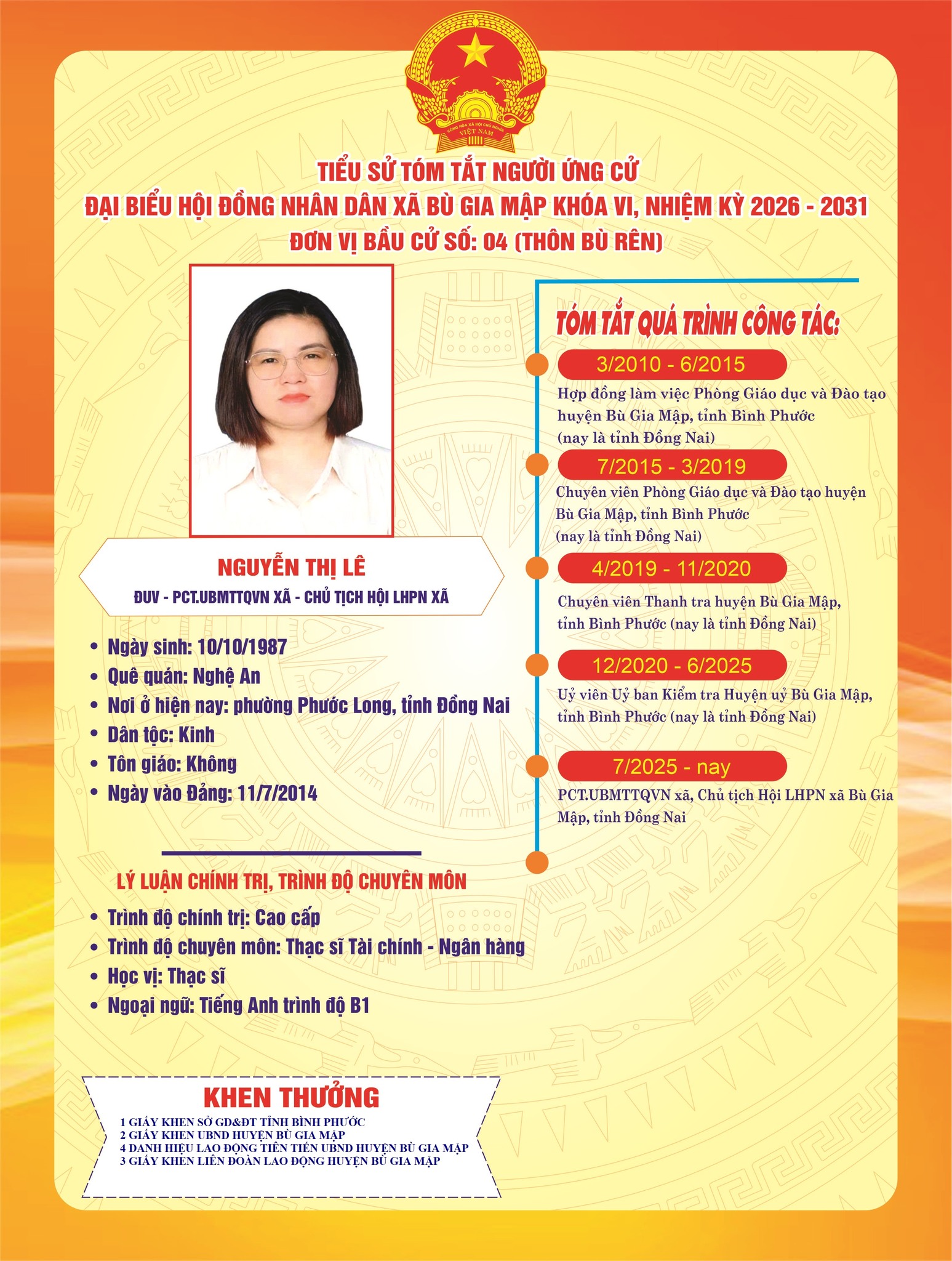Tiểu sử tóm tắt ứng cử viên đại biểu HĐND xã nhiệm kỳ 2026–2031