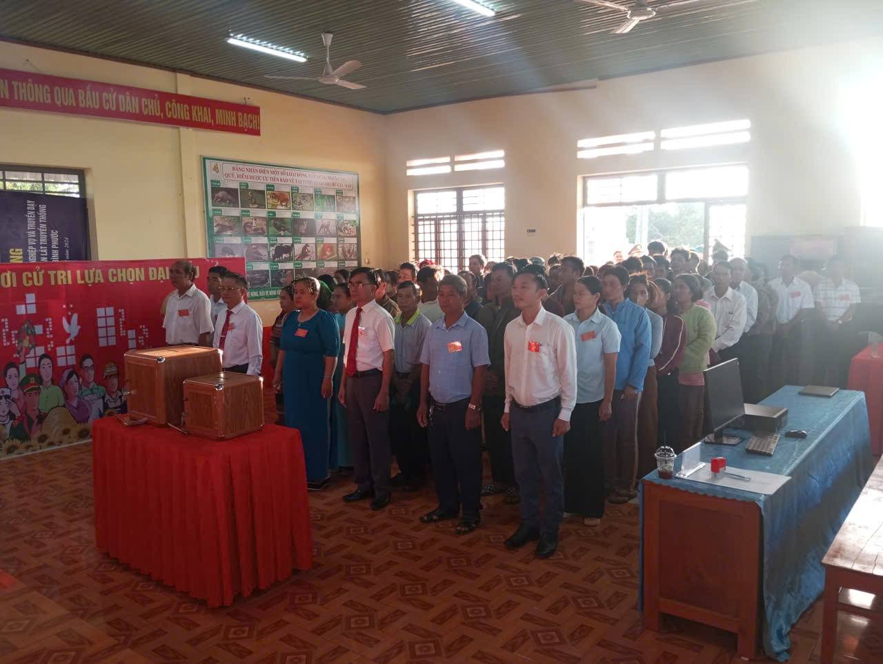 Ngay từ sáng sớm, trên khắp địa bàn xã, cờ hoa, băng rôn, khẩu hiệu được trang hoàng rực rỡ, tạo nên không khí vui tươi, phấn khởi nhưng không kém phần trang nghiêm, thể hiện niềm tin, sự kỳ vọng của cán bộ, đảng viên và Nhân dân đối với sự kiện chính trị trọng đại của đất nước. 09 Tổ bầu cử trên địa bàn xã đã đồng loạt tổ chức Lễ khai mạc theo đúng quy định, bảo đảm trang trọng, an toàn, dân chủ và đúng trình tự.<br />