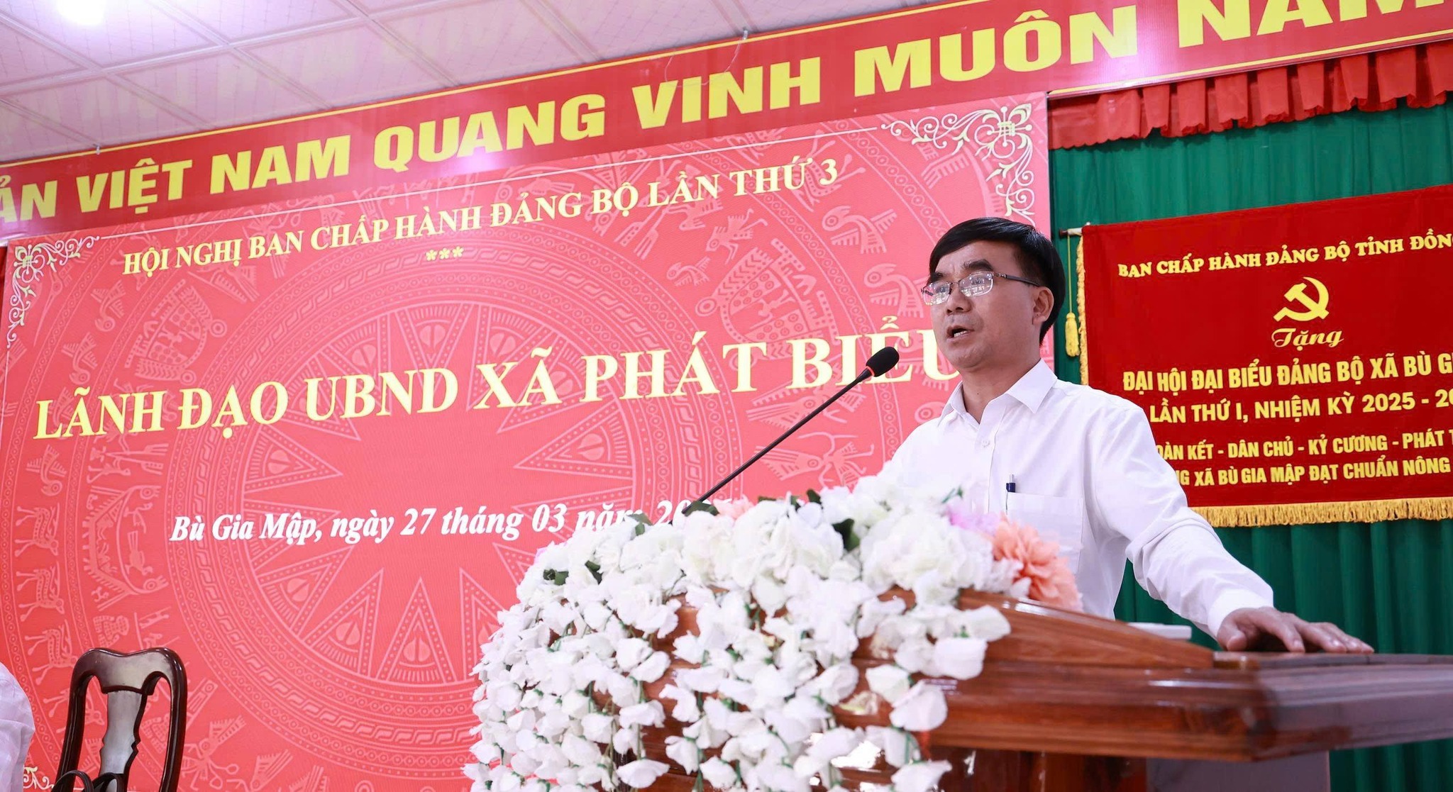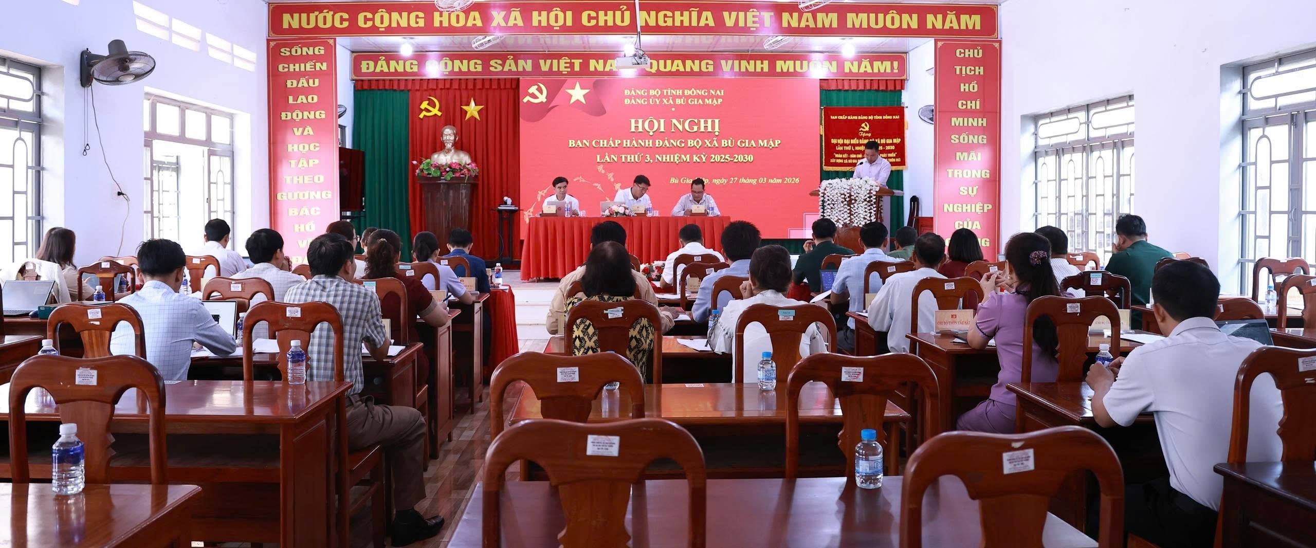 Sáng ngày 27/3/2026, Đảng ủy xã Bù Gia Mập tổ chức Hội nghị Ban Chấp hành Đảng bộ xã lần thứ 3 nhằm đánh giá toàn diện tình hình thực hiện nhiệm vụ quý I, triển khai phương hướng, nhiệm vụ quý II năm 2026 và xem xét, quyết định nhiều nội dung quan trọng.