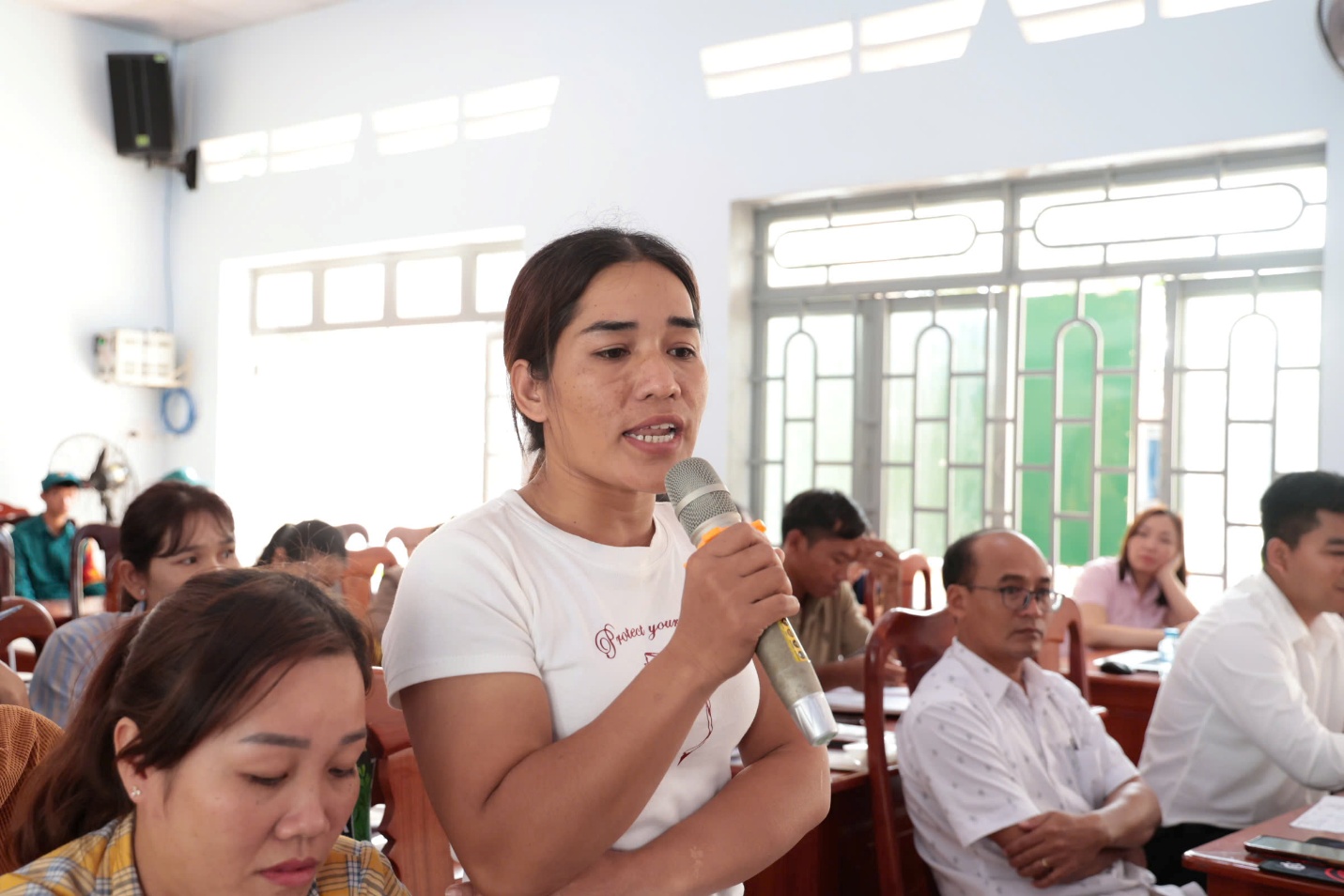 (Hình ảnh tổ trưởng Điểu Thị Ban phát biểu tại điểm GDX Bù Gia Mập)