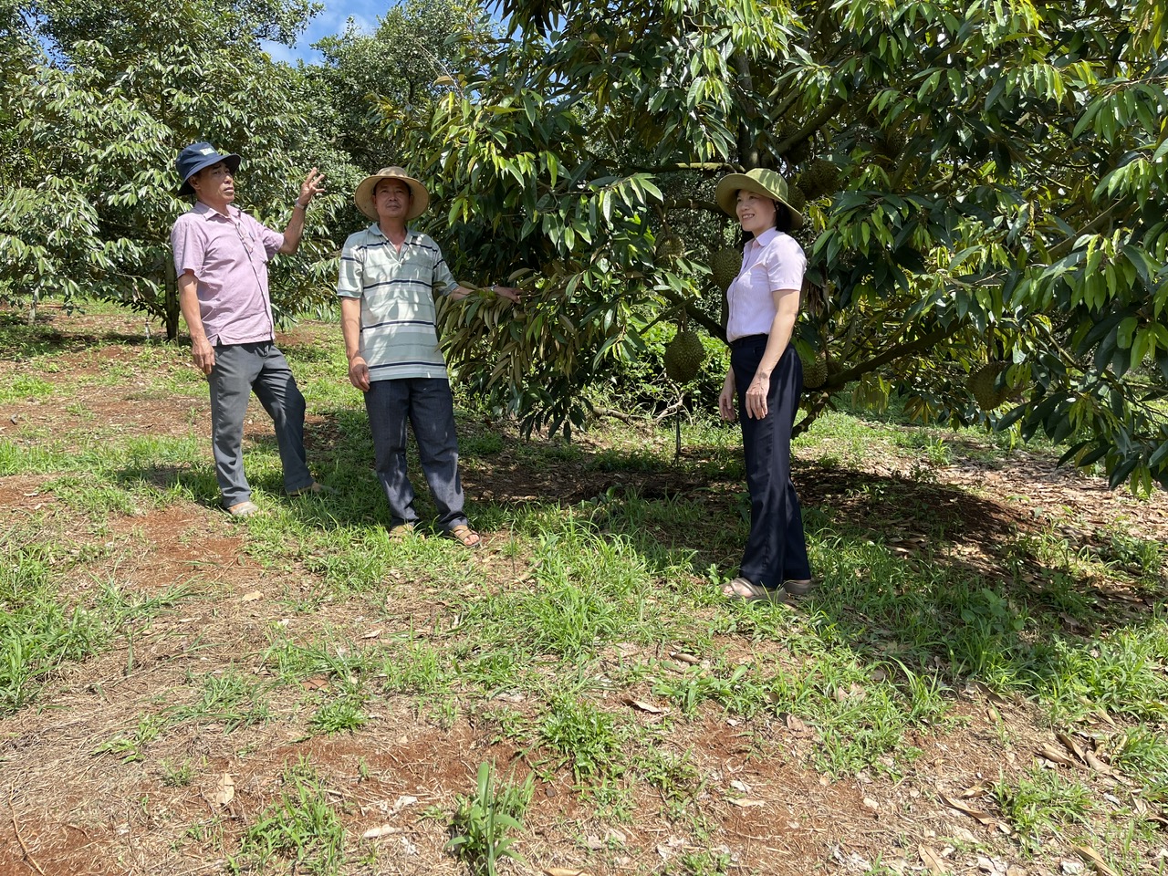 Hình ảnh hộ vay sử dụng vốn vay ưu đãi từ NHCSXH để chăm sóc cây ăn trái