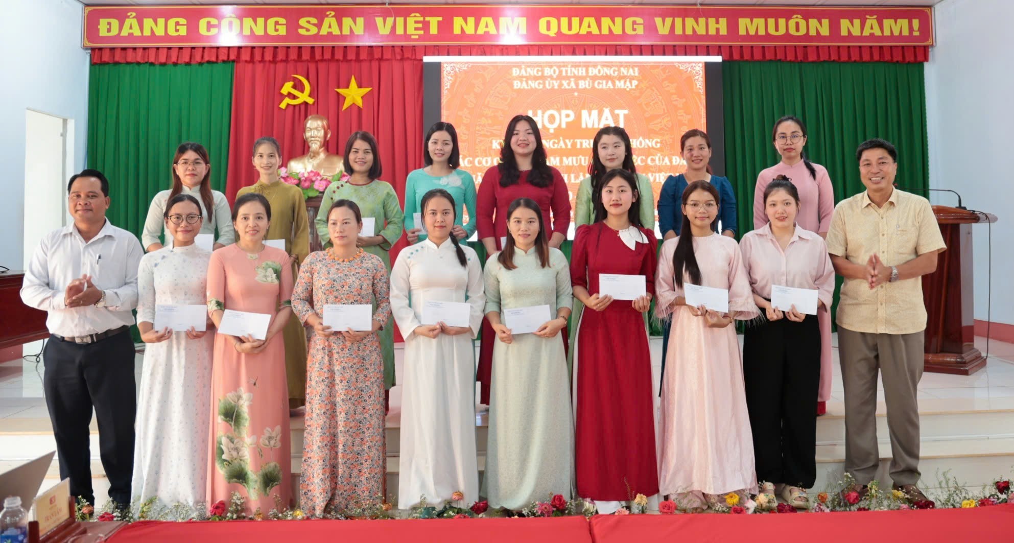 Dịp này, Đảng ủy xã Bù Gia Mập đã tổ chức trao tặng những phần quà ý nghĩa cho các chị em phụ nữ tiêu biểu, nhằm tri ân, động viên và ghi nhận những nỗ lực, cống hiến của đội ngũ nữ cán bộ, công chức, viên chức trong công tác Đảng, chính quyền, Mặt trận và các đoàn thể. Hoạt động thể hiện sự quan tâm, trân trọng của cấp ủy Đảng đối với lực lượng nữ – những người luôn giữ vai trò quan trọng trong sự nghiệp xây dựng quê hương.